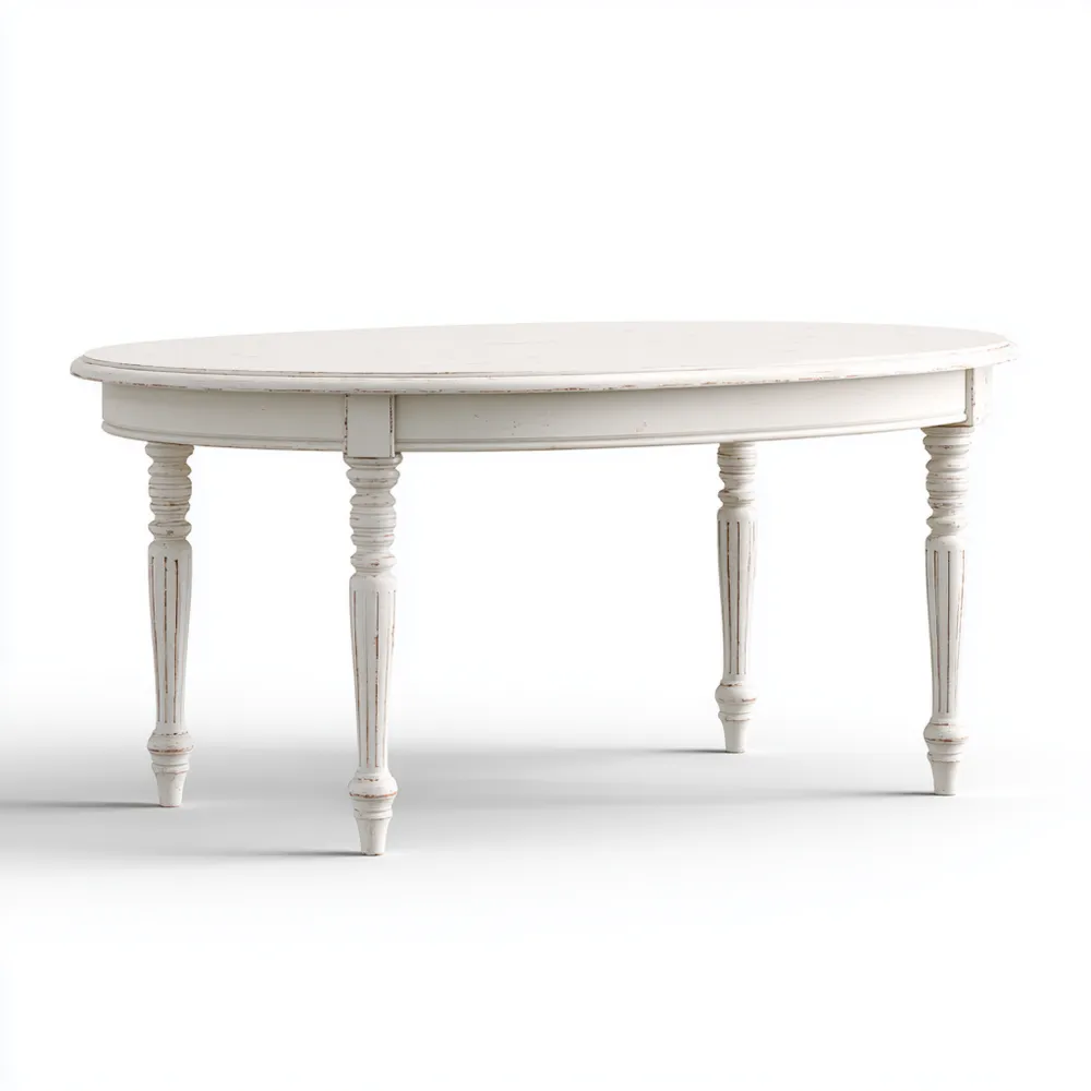 Esstisch Holz Oval 150x90x75 cm - Cremeweiß - Klassisches Design