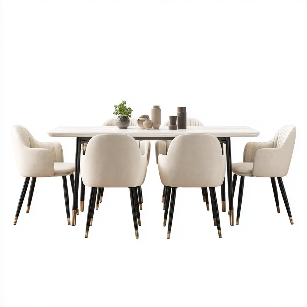 Esszimmer-Set Tisch Stühle 7-teilig Metall 200x90x75 cm – Beige – Modernes Design