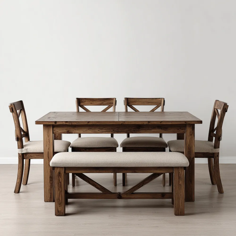 Funktionale HighlightsDas Set umfasst einen geräumigen Tisch und komfortable Sitzmöglichkeiten, ideal für gesellige Abende oder festliche Anlässe.