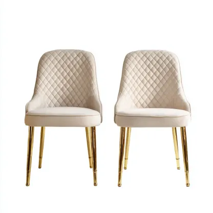 Material und VerarbeitungDer Stuhl ist mit hochwertigem cremefarbenem Samt bezogen und verfügt über robuste goldene Metallbeine, die dem Design einen Hauch von Luxus verleihen.