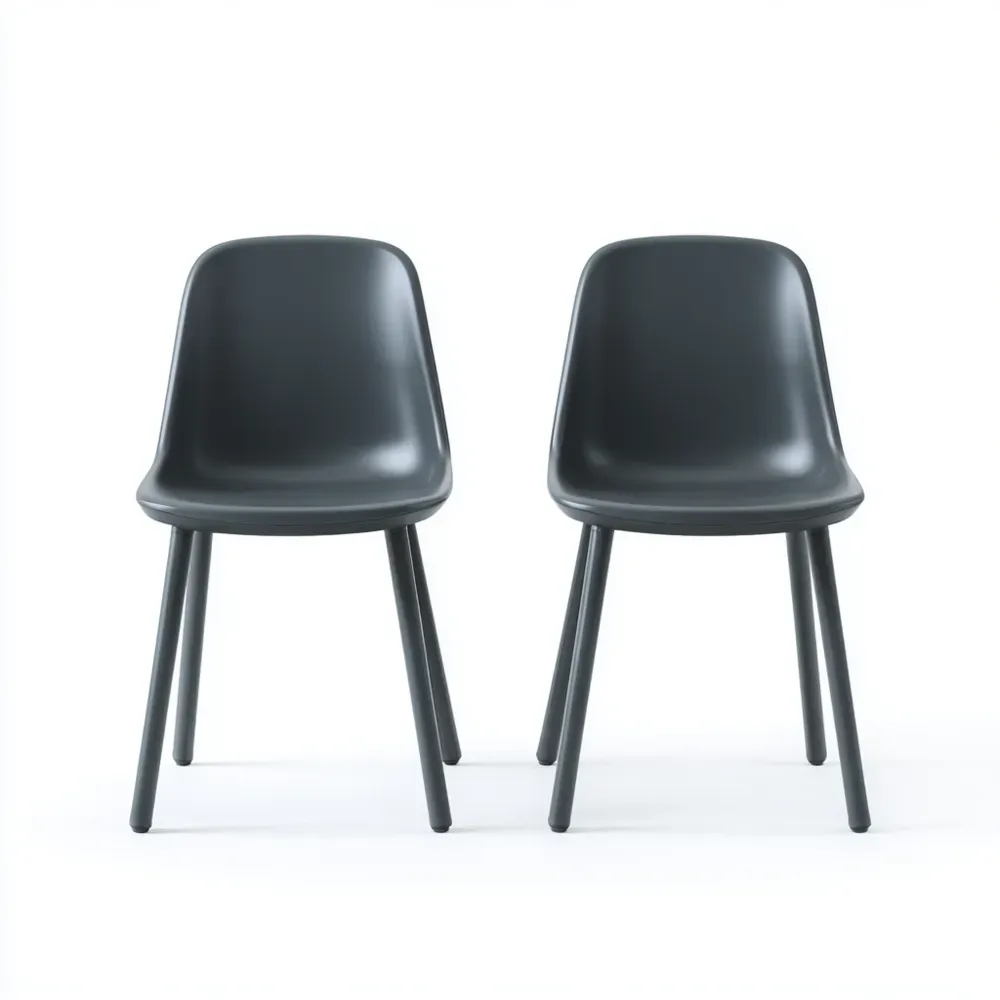 Material und VerarbeitungDie Stühle sind aus hochwertigem Kunststoff gefertigt und in einem eleganten Dunkelgrau gehalten, das sich leicht mit verschiedenen Dekorstilen kombinieren lässt. Die robusten Beine sorgen für Stabilität und Langlebigkeit.