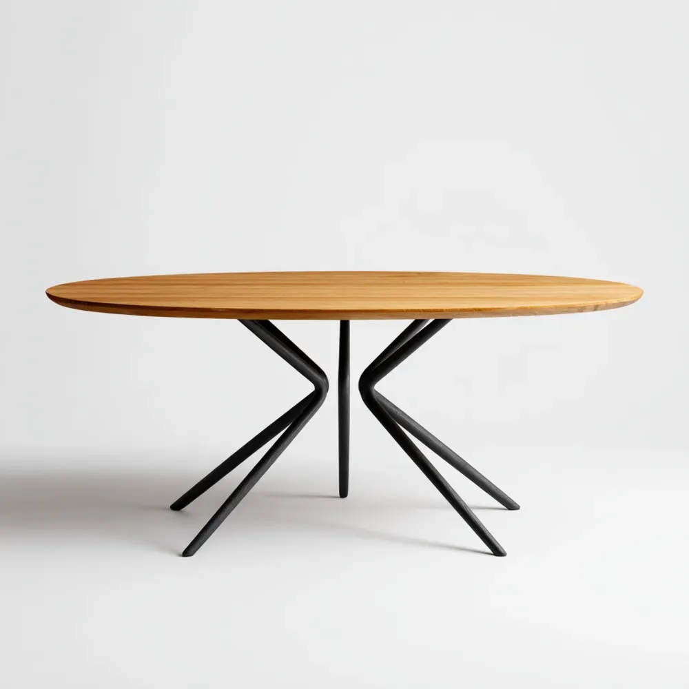 Material und VerarbeitungDie Tischplatte besteht aus hochwertigem Eiche-Massivholz in natürlicher Farbgebung, kombiniert mit einem stabilen schwarzen Metallgestell.